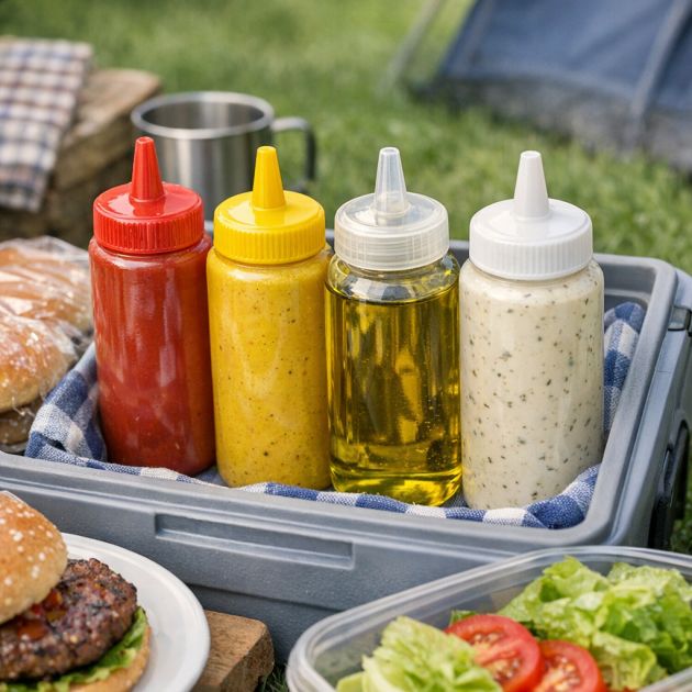 Use empty condiment bottles to store and transport condiments, oils, or dressings for camping trips or picnics. Their compact size and leak-proof design make them ideal for on-the-go meals.