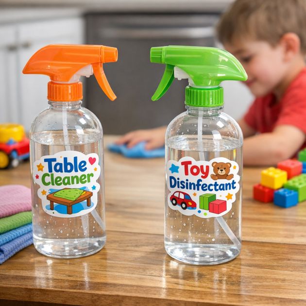 7. Use Labeled Bottles For Kid-Friendly Chore Sprays