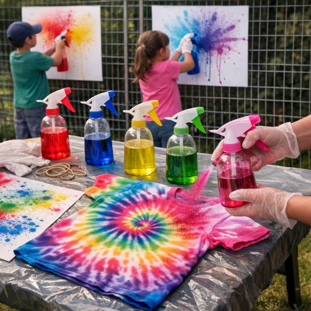 Unleash your creativity by using empty spray bottles in arts and crafts projects. Fill a bottle with water and a few drops of food coloring to create a paint spray for outdoor art activities. Kids can spray the colors onto large sheets of paper or fabric, creating unique and colorful designs.