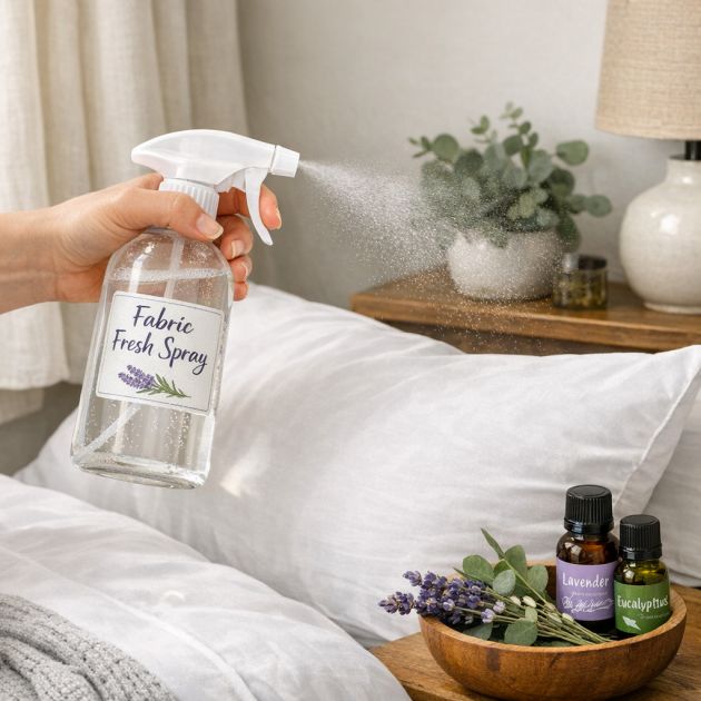 Freshen up your fabrics and linens with a homemade fabric spray. In a spray bottle, mix 1 cup of distilled water, 1/4 cup of rubbing alcohol, and 10-15 drops of your favorite essential oil. Lavender and eucalyptus are popular choices for their soothing and refreshing scents.